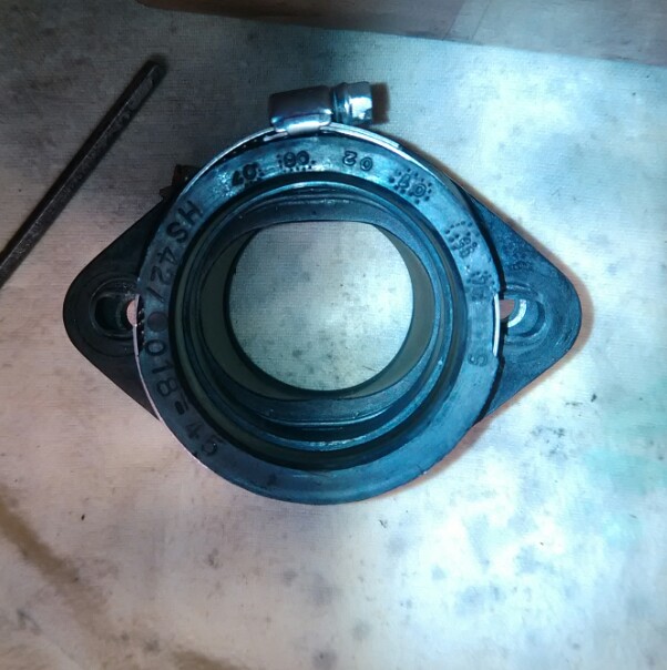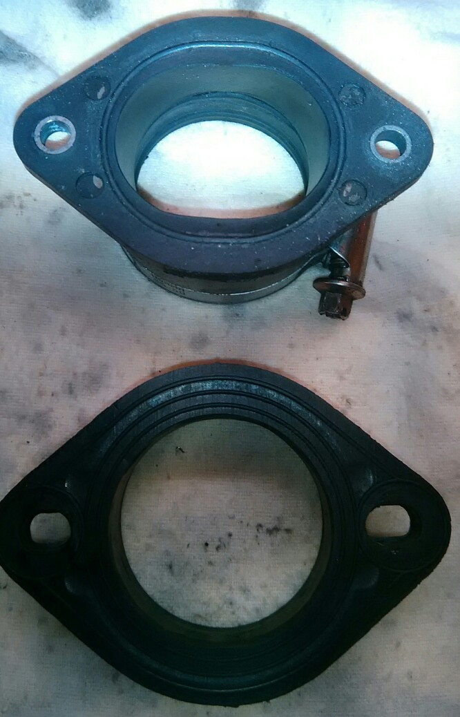Oben der originale ovale Ansaugstuzen vom 40ger dellorto (Rundschieber).
