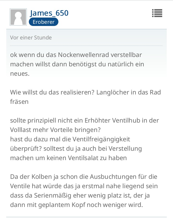 Es ist ja auch so, dass wenn mann es genau nimmt, die Steuerkette wenn sie sich längt, das dann ebenfalls die Steuerzeiten nicht mehr ganz genau stimmen.