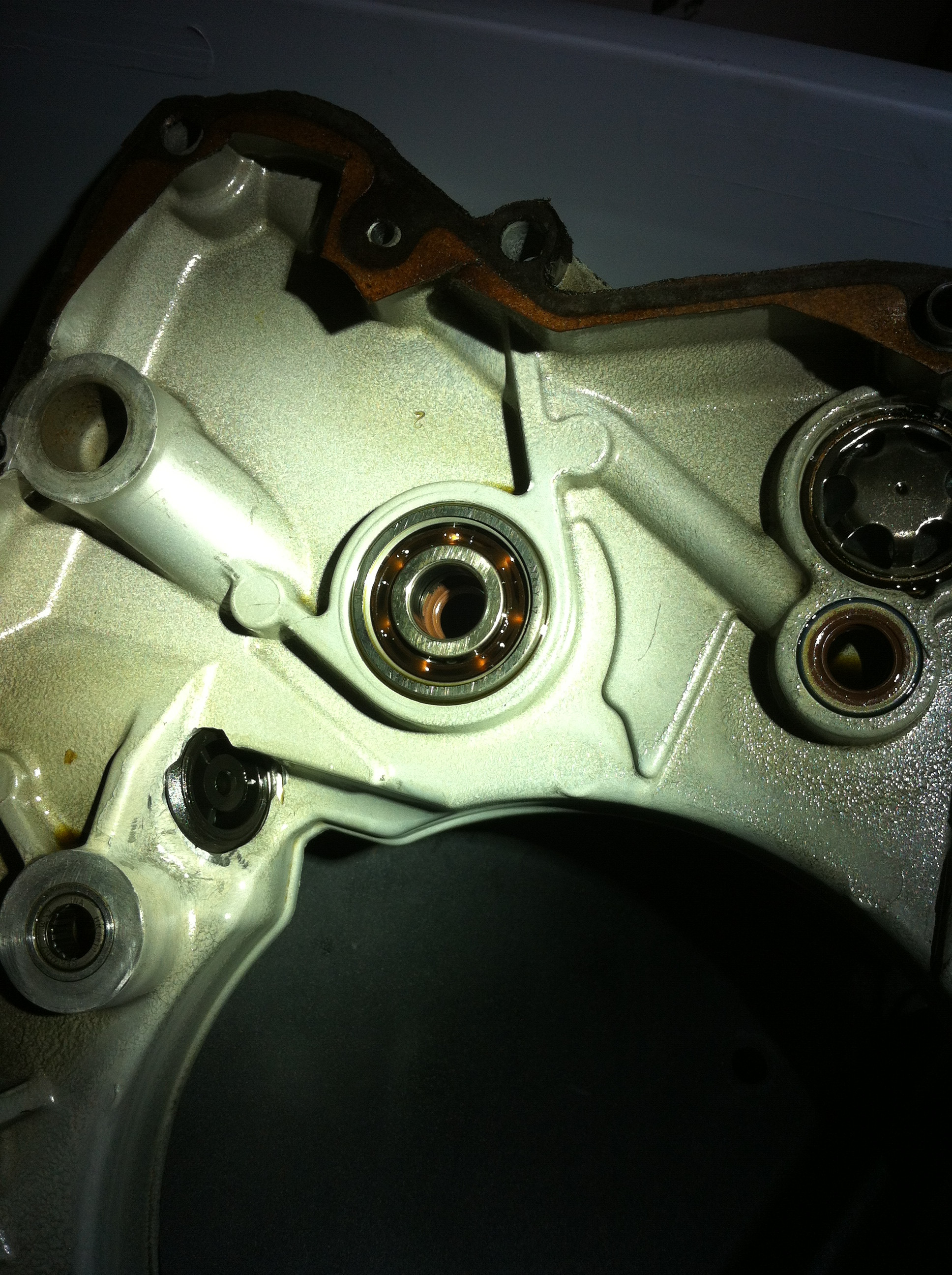 Innenseite (also kupplungsdeckel) hat dafür diesen Gummidichtring, sonst würde das Öl wie gesagt von innen durch die Lagerkugeln nach aussen laufen Richtung Wasserpumpe.