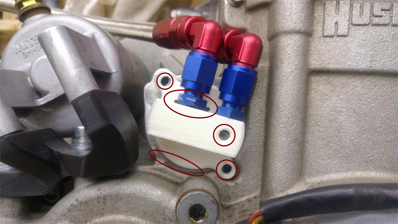 3. Anschluss der Ölleitungen ragt bis in die Hilfsbohrung - kollidiert mit Madenschraube zum Verschließen der Hilfsbohrung.