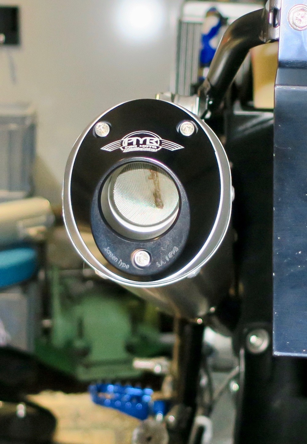 Heute hab ich die Auspuffanlage montiert: vorher einen Spark Arrestor von PMB reingenietet.