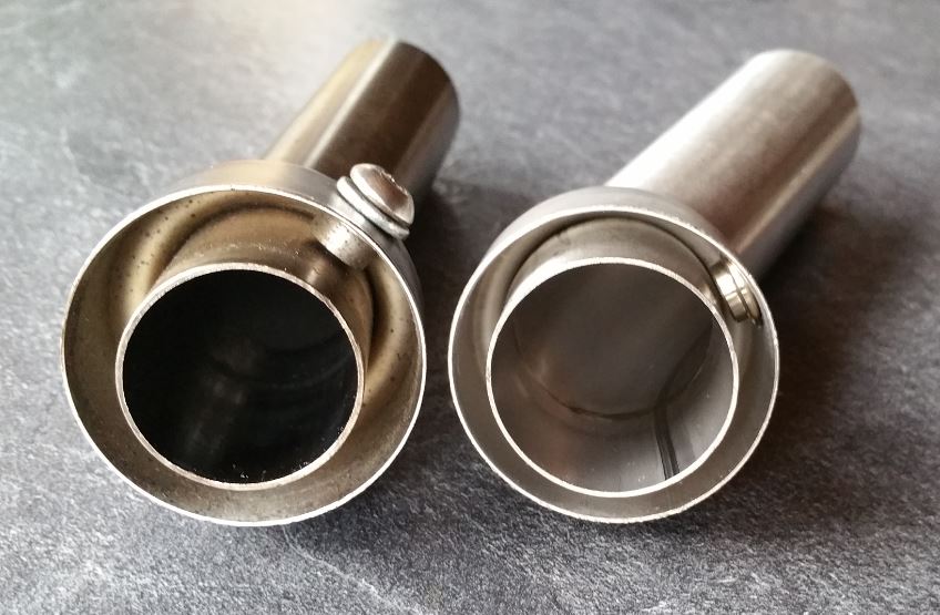 Innen läuft der REMUS konisch von den 75 mm Einlaß zum dB Killer hin zu.