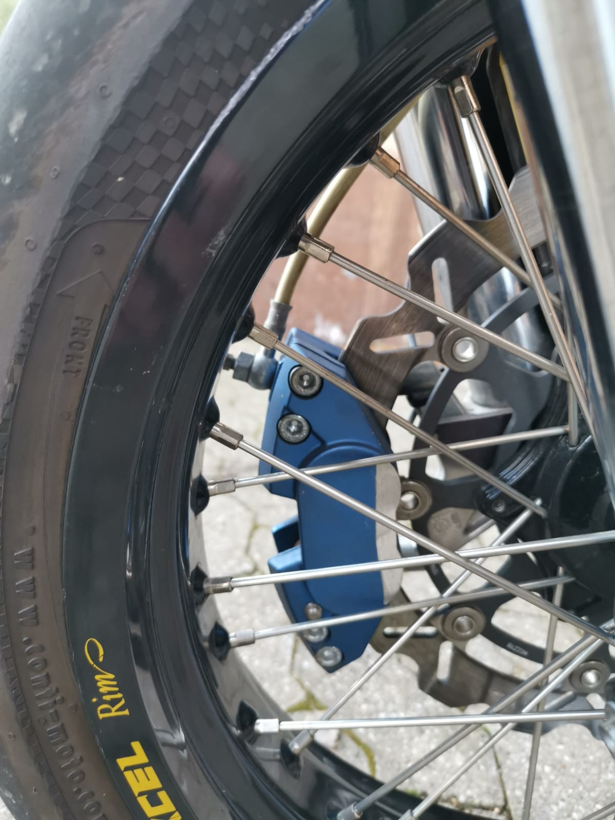 Hallo nochmal, habe das Problem gelöst bekommen, einen 5mm Distanzring unter die Bremsscheibe und vor allem eine andere "flachere" Distanzhülse auf der anderen Seite (rechts vom Fahrer aus gesehen) der Achse. Das Problem bei dem Radsatz waren wohl die Distanzhülsen und die Einspeichung der Nabe, das passte alles mit dem Motomaster Adapter und einer Motomaster Scheibe. Mit dem FTE Sattel und dem Radialen Gabelfuß dann nicht mehr.