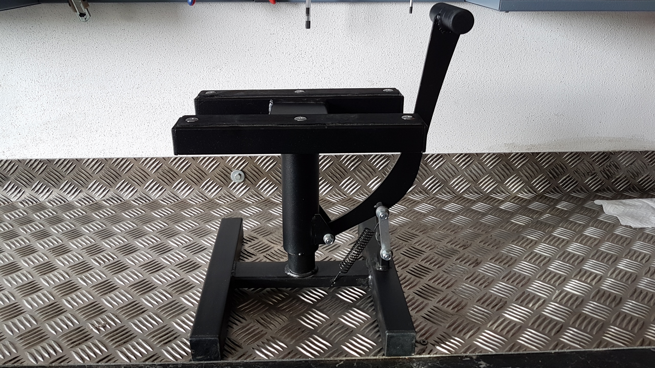 Der Montageständer bietet eine Arbeitshöhe von 30-43cm bei einer maximale Belastung von 200 kg, also ideal für Enduros & Supermotos.