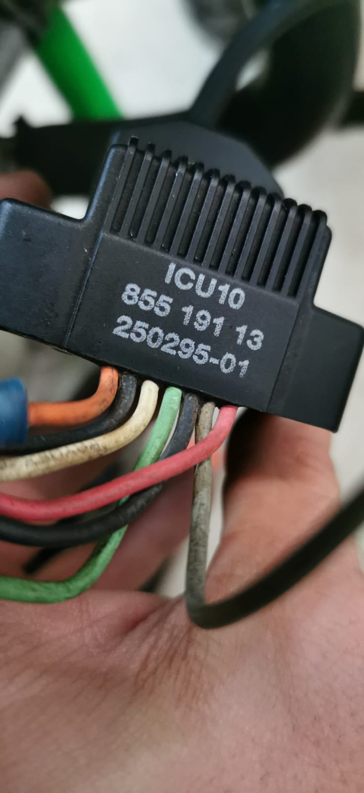 Deine Zündspule/ICU ist von Bj. 2002, Husaberg FE 400. Zündfunke sollte die trotzdem erstmal machen, auch wenn das Teil nicht ganz zur Maschine passt. Das erklärt erstmal warum Du 7 Kabel hast, und nicht 6.