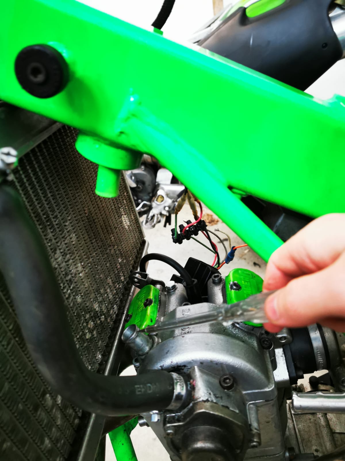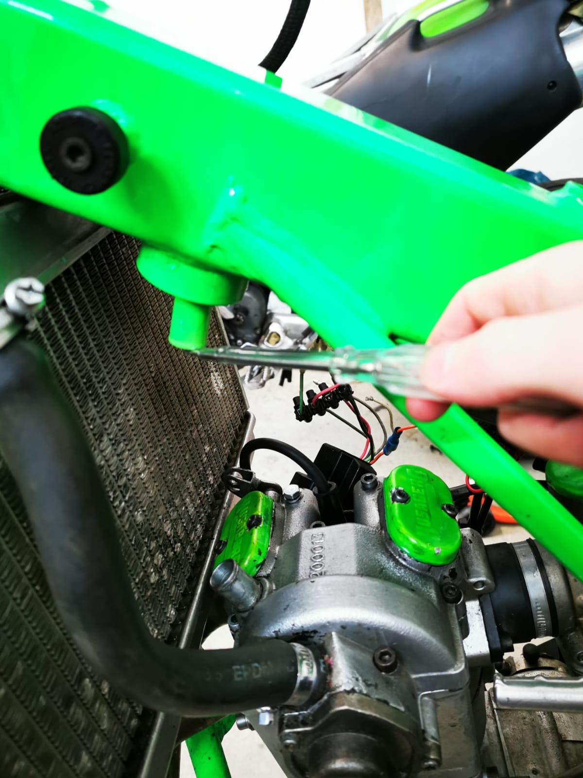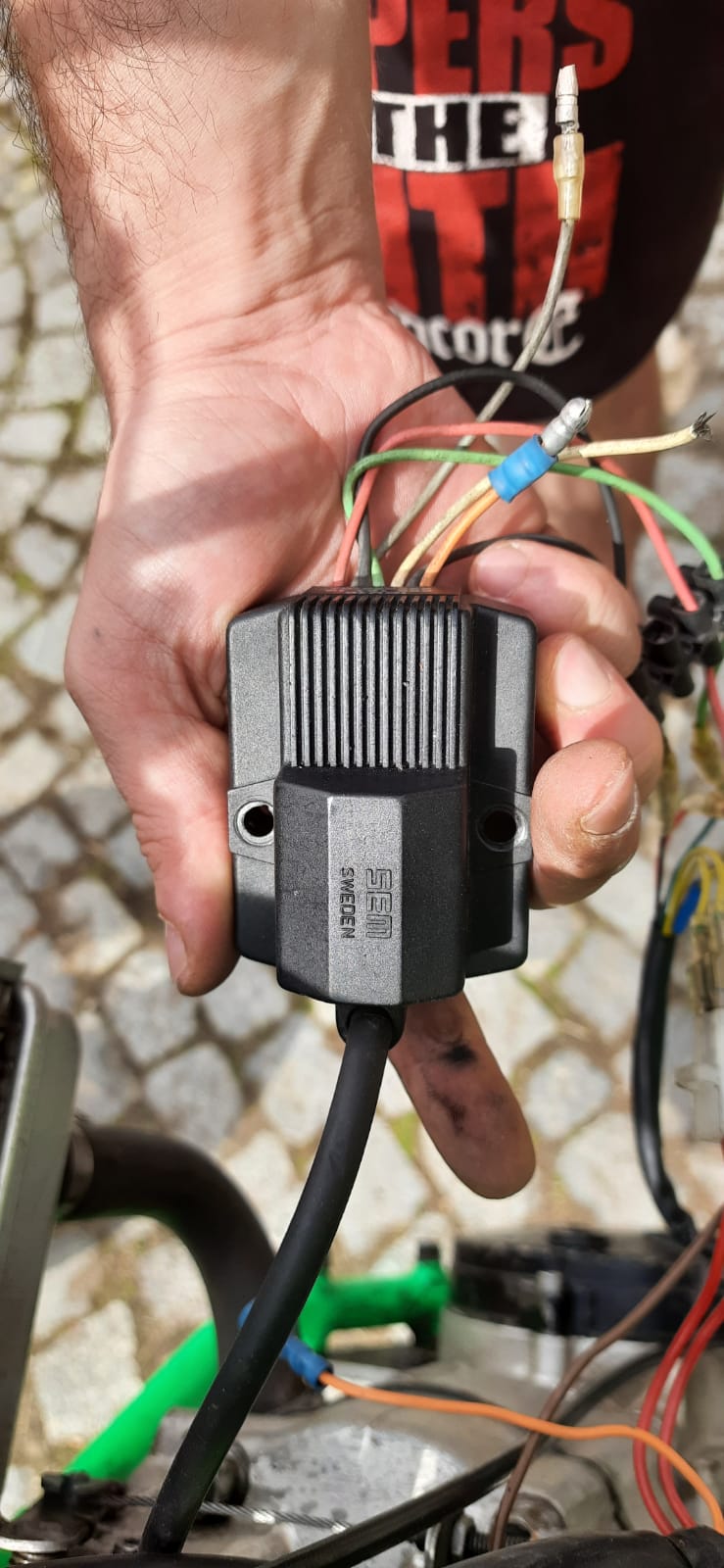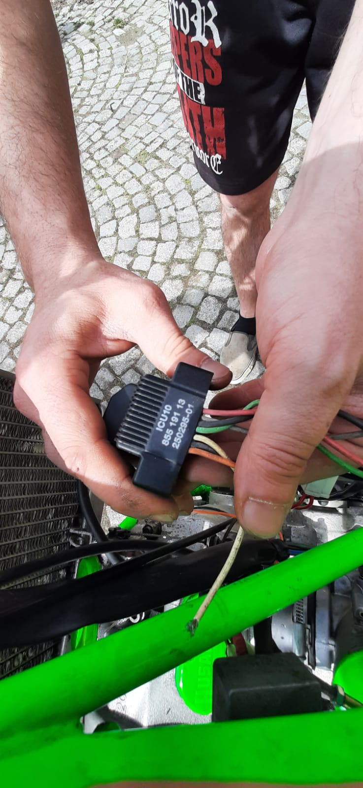 Leider hat diese ein kleines Problem. Die CDI bzw die Zündung. Als wir sie heute dann mal entkleidet haben, ist uns aufgefallen, dass 3 Kabel von der Spule lose hängen und nirgendwo angesteckt sind.