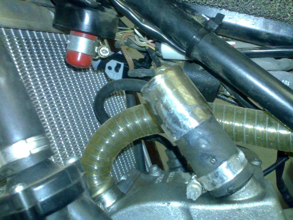4) Inzwischen hab ich das ganze etwas weiter entwickelt. Im Schlauch sammelt sich am tiefsten Punkt Öl. ich habe da einen kleinen Schlauch eingeklebt (dauerelastischer Gummikleber) . Außen etwas Silicon zur Sicherheit und dann ein Bischen Textilklebeband zur Versteifung.