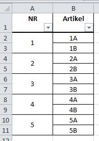 Ein Problem tut sich auf wenn ich nach der ersten Spalte Filtern möchte....es zeigt sich dann in der zweiten Spalte nur die erste Zeile und nicht beide wie ich es gerne haben würde.