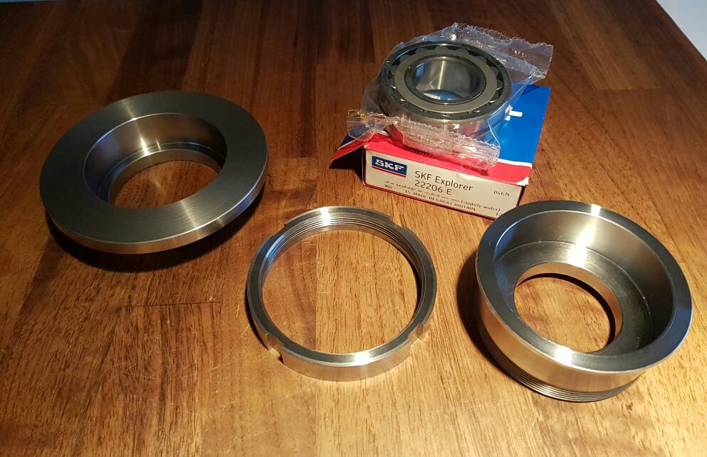 The Husaberg 550 and 650 are infamous main bearing killers. The culprit is the crankshaft, because it is weak and spreads to the shape of a banana when picking up revs. I'm planning on making a tougher crank. It will require you to remove the counter balancer. The left crank web will be thicker, to be able to hold the crank pin better. The right side will have a taller shaft to accomodate a second main bearing in the flywheel compartment. A spacer/bearing cage will be mounted at the right side and then OEM flywheel/stator/cover.