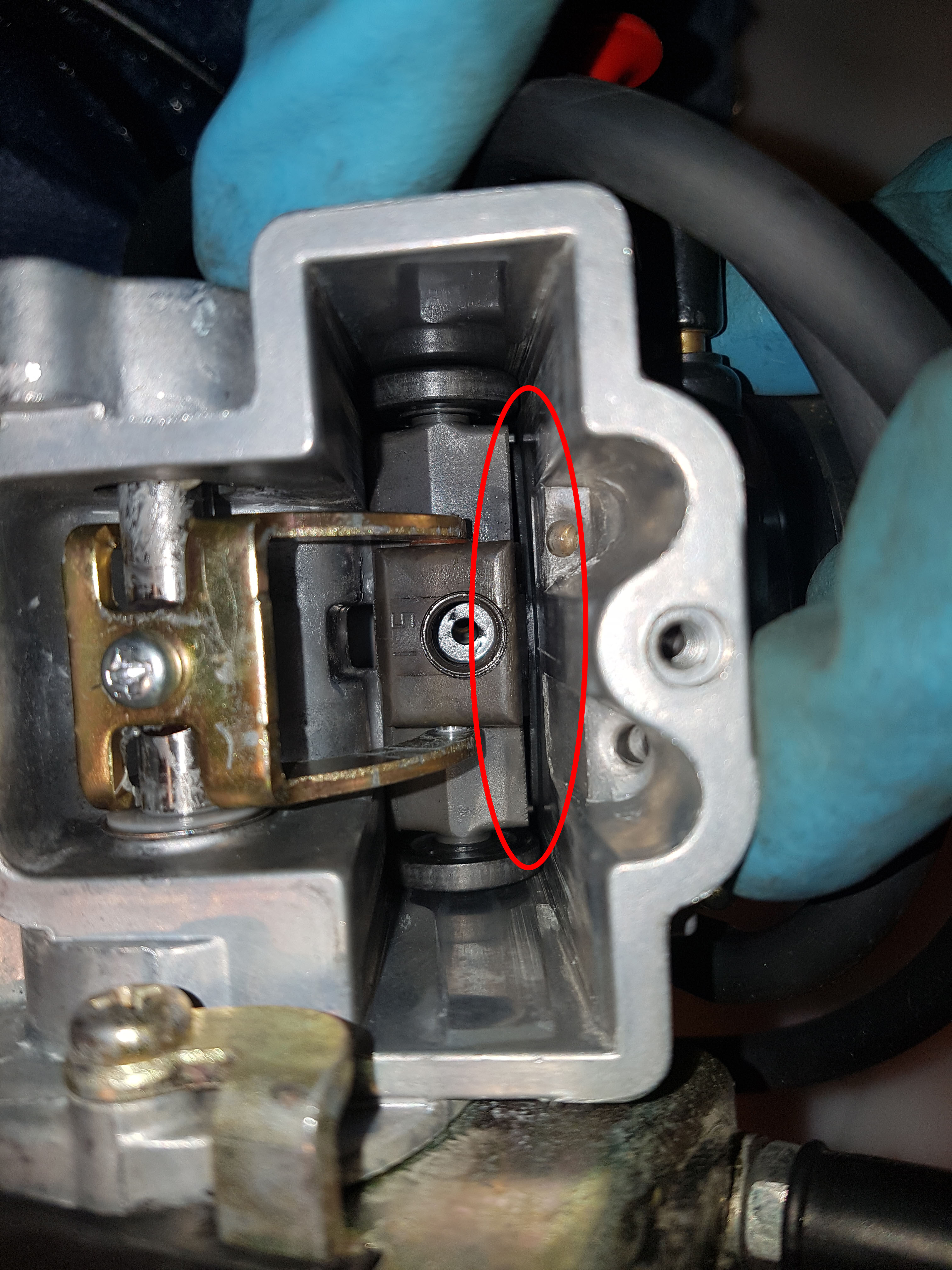 Das war auch ein Tipp aus dem Forum hier, der echt hilfreich schien! Die Dichtplatte am Gasschieber, die mit der Gummilippe abgedichtet ist, bekommt, über die Jahre und die Abnützung, etwas Spiel...dadurch kann links, rechts, oben, unten eventuell Falschluft bei geschlossenem Schieber vorbei und die Karre läuft untenrum bzw. am Stand einfach echt bescheiden. Das war sicher auch bei mir ein Mitgrund für das grottenschlechte Standgasverhalten und die Gasannahme!