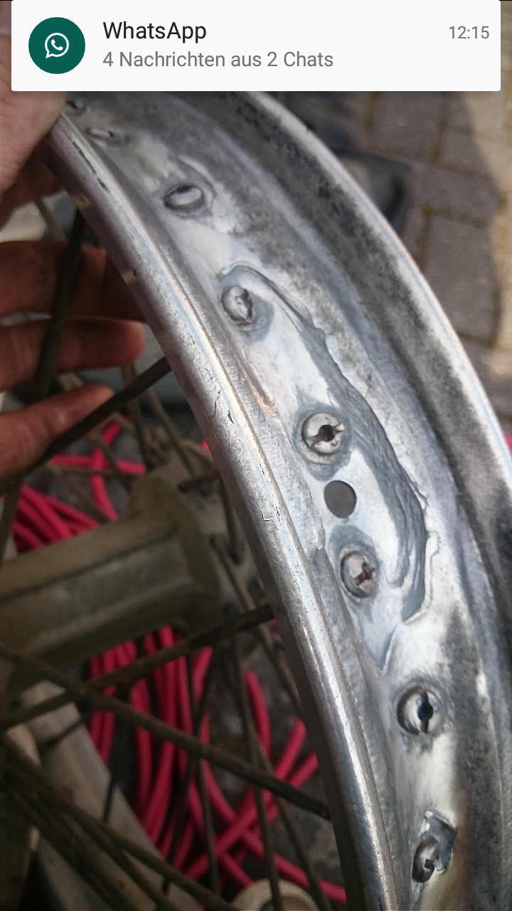 Aber aller Spekullation zum Trotz, mit einem so stark angefressenen Felgenkranz solltest Du keinen Meter mehr fahren.