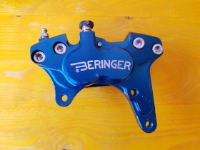 biete euch hier eine Beringer 4 Kolben Zange in blau an, da ich sie in einem Set mit Bremspumpe und Scheibe gekauft habe, die Zange aber nicht benötigt habe....leider hat sie ein paar Spuren von den Speichen des Vorbesitzers, der hat wohl eine breitere Felge gefahren...ist aber ein rein optischer Mangel