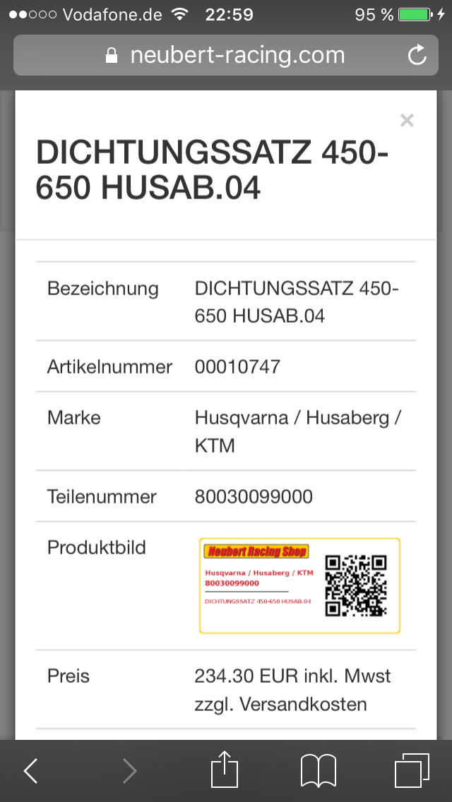 Habe schon Dichtungen wie Wasserpumpe , kupplungsdeckel etc einzeln im Warenkorb