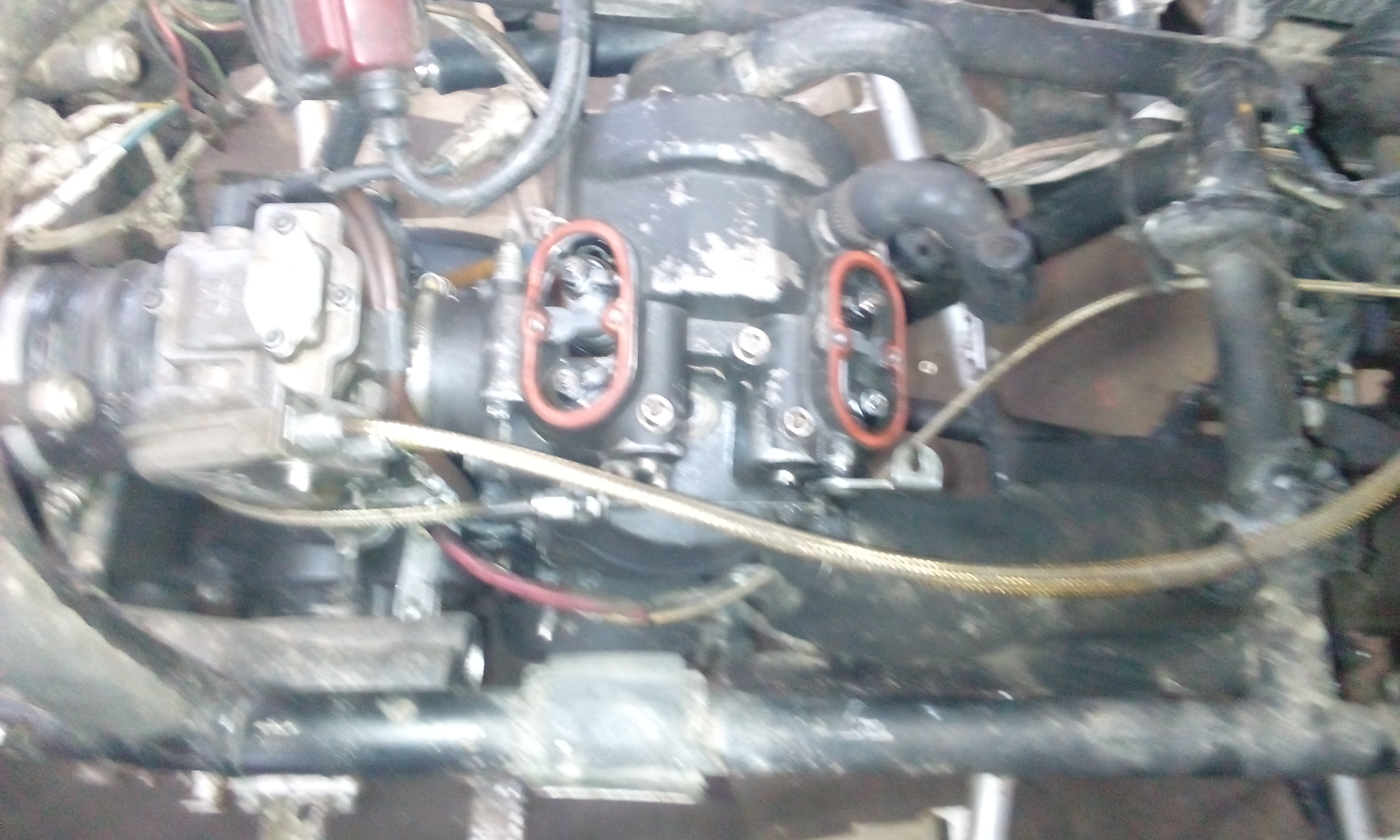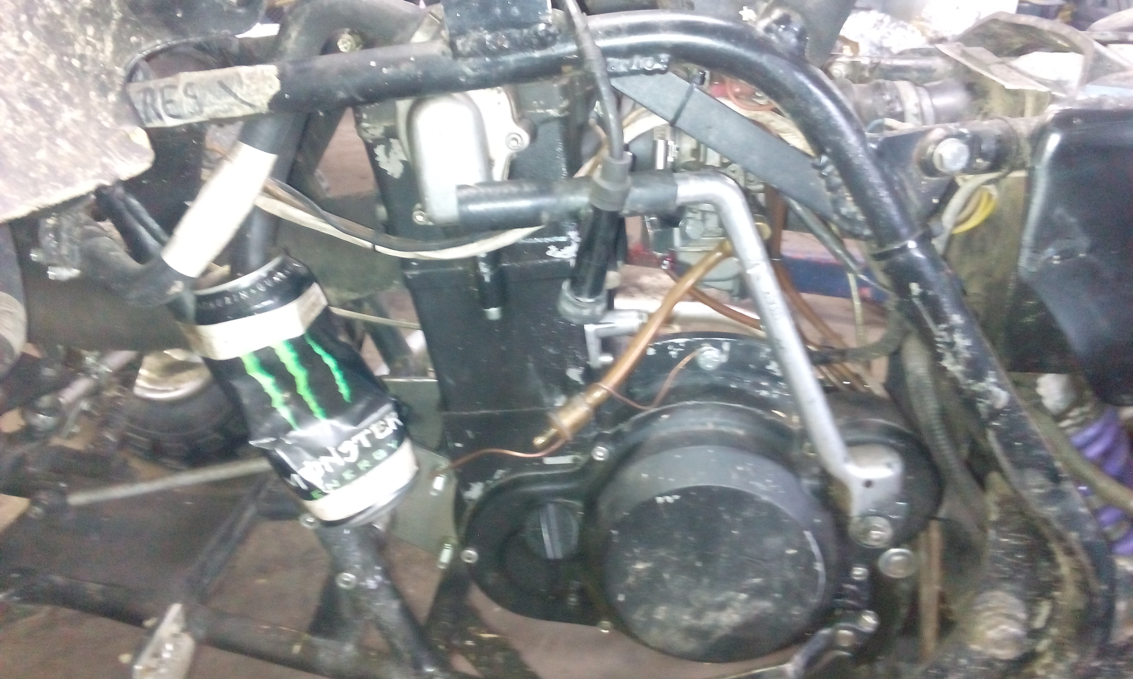 Fakt ist da ist ein 350ccm Husaberg Motor drauf der nur über einen Kickstarter verfügt (links), viertakt Einzylinder mit Keihin Vergaser.