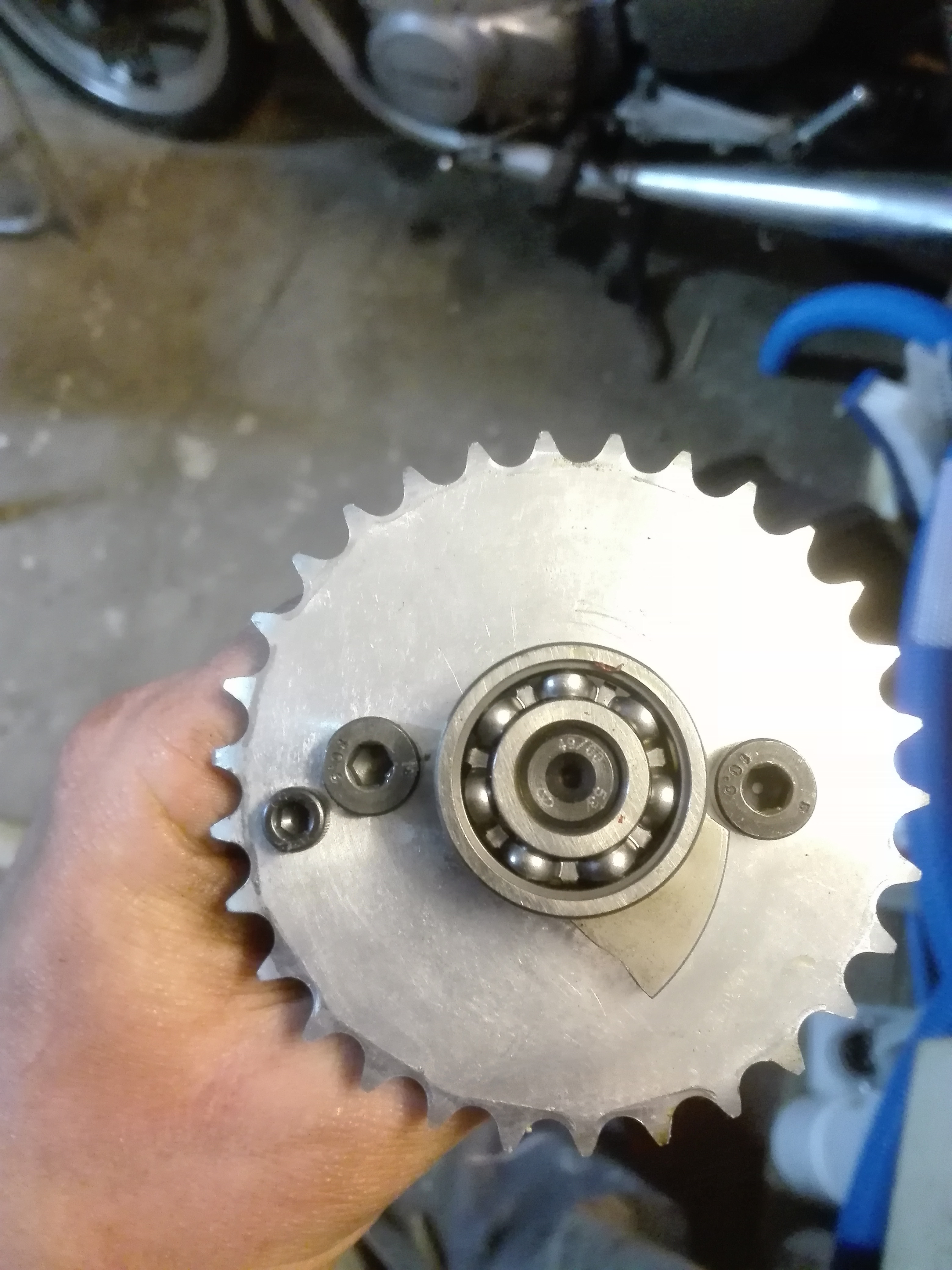Jetzt habe ich ein Problem mit dem Zusammenbau der Schaltwalze und dem Nockenwellenrad. Beide sollten lt. Werkshandbuch einen Körnerpunkt bzw. Farbliche Markierungen haben.