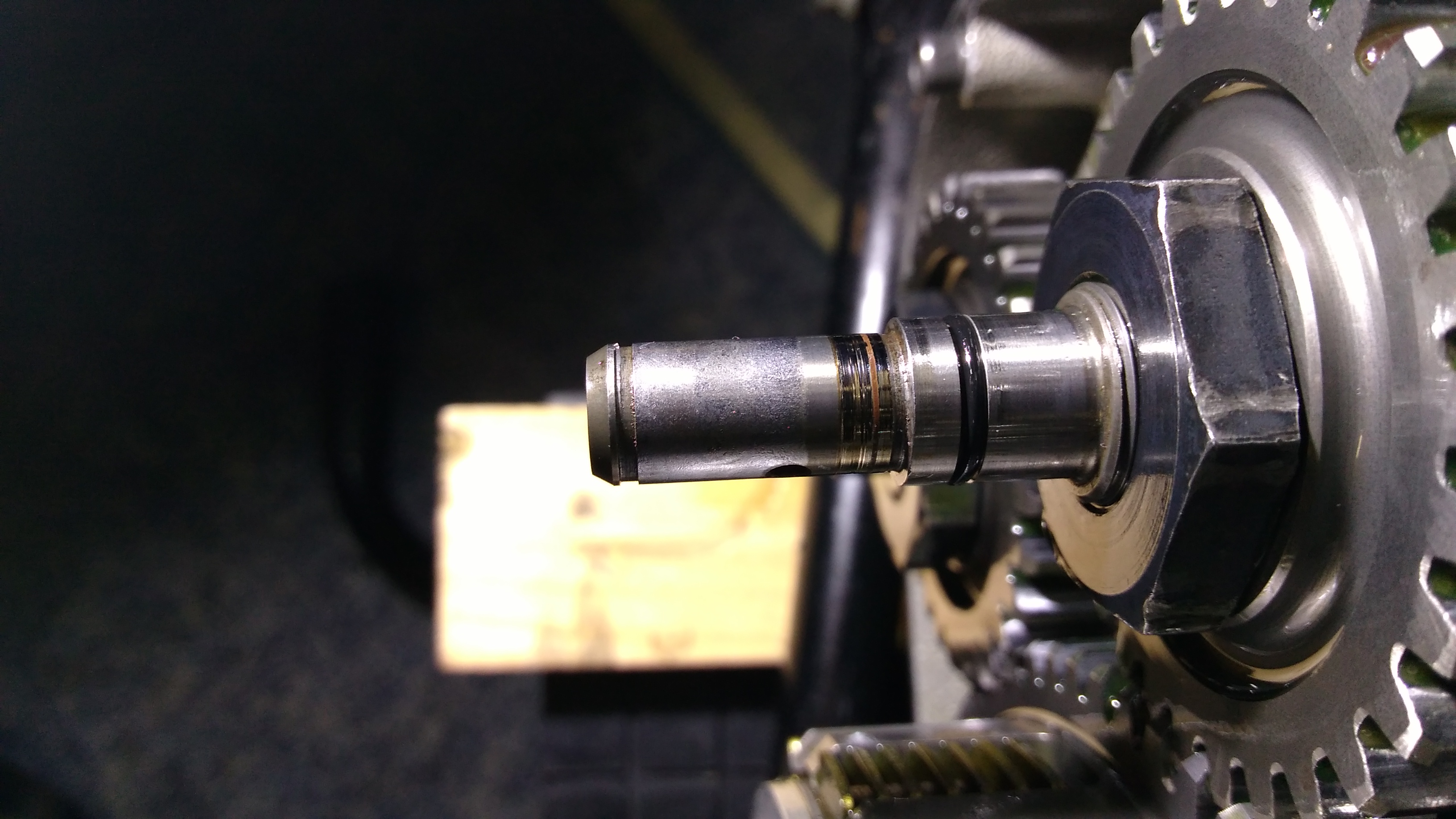 Habe dann gesehen das an der Ausgeichswelle wo der Wellendichtring der WaPu sitzt , wie ich finde sehr starke einlaufspuren vorhanden sind, seht selbst....